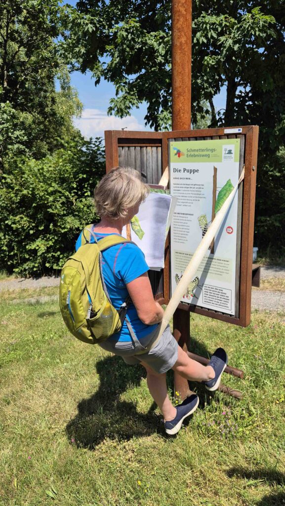 Drugi terenski dan bio je na području Naturpark Mühlviertel u mjestu St. Thomas am Blasenstein. Organiziran je vođeni razgled po poučnoj stazi leptira dugoj 1,6 kilometara. Riječ je dijelu nekadašnje hodočasničke staze koja je pretvorena u atraktivnu poučnu stazu na temu leptira. Kroz sedam aktivnih postaja staze uči se o svijetu dnevnih i noćnih leptira, bioraznolikosti područja te potrebi očuvanja staništa koja su bitna za opstanak divljih oprašivača. Staza leptira, Schmetterlingserlebnisweg, uređena je interpretacijskim tablama te interaktivnim modelima, a uz interpretatora stazom vodi i leptir Franz, ilustracija i maskota te atraktivne prirodoslovne priče. Namijenjena je za edukaciju svih dobnih skupina. Vodiči edukatori staze, ističu kako su leptiri leteći dragulji.