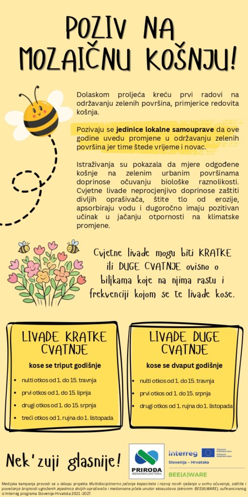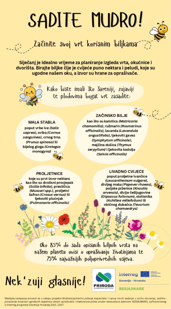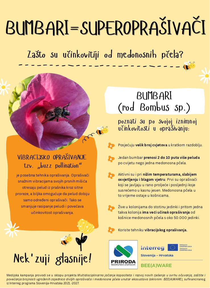 Nastavljamo s medijskom kampanjom pod sloganom Nek’ zuji glasnije! u sklopu projekta BEE(A)WARE. Cilj kampanje osvijestiti je javnost o zaštiti oprašivača, ne samo medonosne pčele, već se ovog puta naglasak stavlja na divlje oprašivače. Divlji oprašivači u Republici Hrvatskoj slabo su istraženi te se zapravo ne može procijeniti njihovo stanje ugroženosti, veličine populacija niti pojavnost. Ovom kampanjom približit ćemo dio zanimljivosti koje se vežu uz divlje oprašivače.