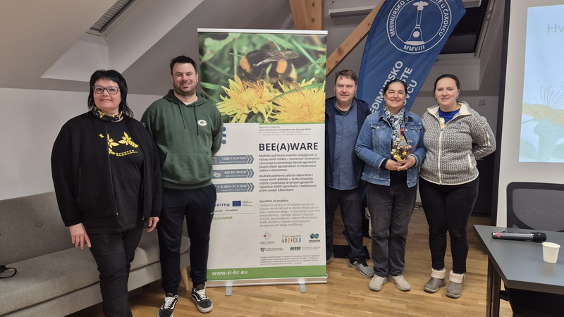 Predavanje je sufinancirano iz projekta „Multidisciplinarno jačanje kapaciteta i razvoj novih rješenja u svrhu očuvanja, zaštite, i povećanja brojnosti ugroženih zajednica divljih oprašivača i medonosne pčele unutar ekosustava“, akronima BEE(A)WARE, sredstvima EFRR-a putem Interreg programa Slovenija – Hrvatska 2021-2027.